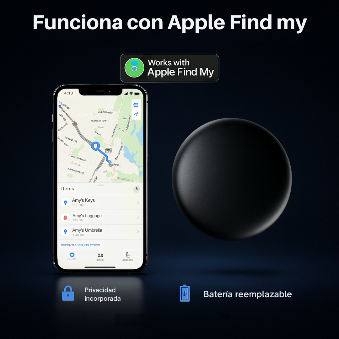 La configuración es rápida y sin esfuerzo — sin necesidad de descargar aplicaciones, sin tarifas mensuales y sin tecnología complicada que aprender. Solo presiona una vez para activarlo y emparejarlo directamente con la app “Find My” en tu iPhone.